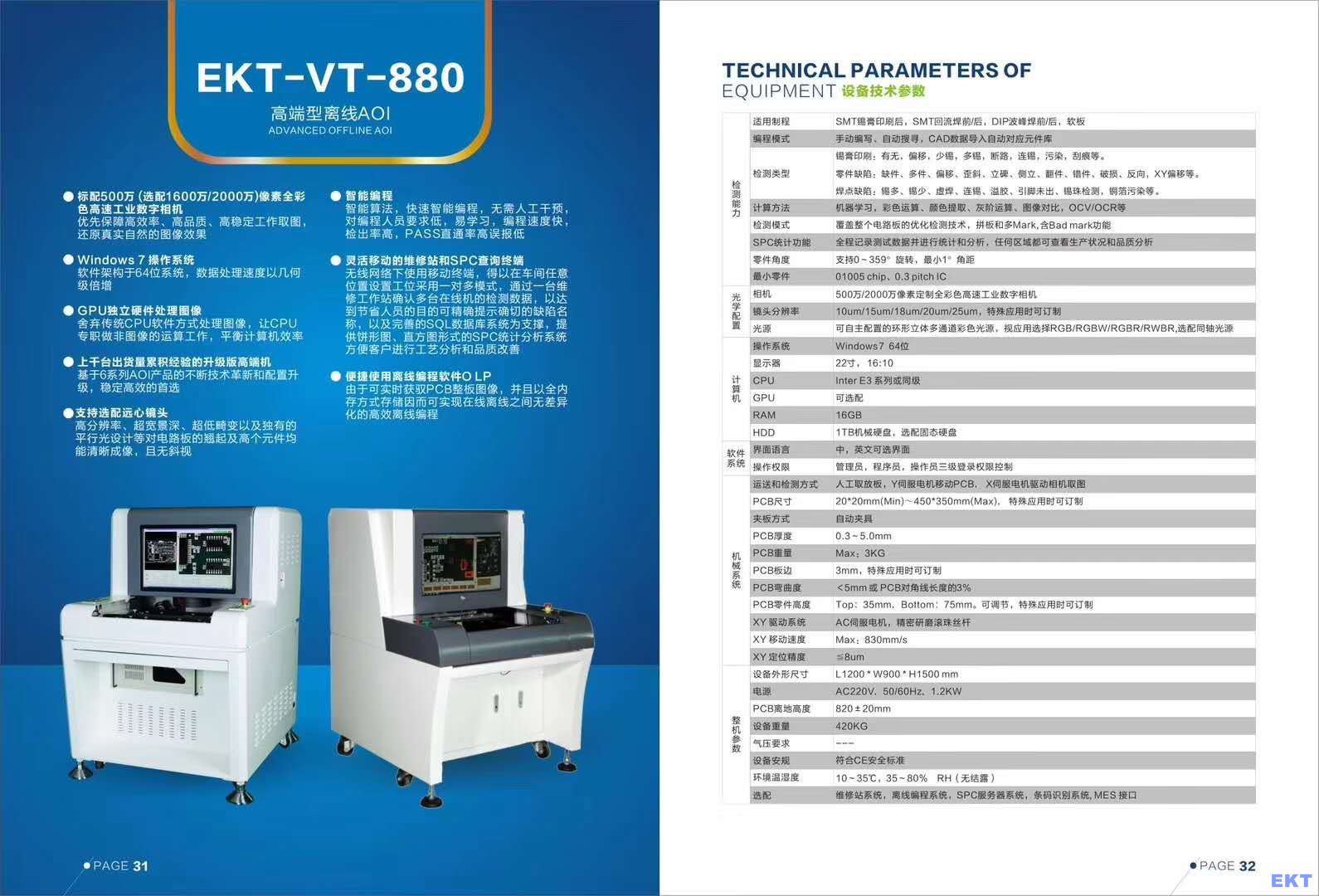 EKT-VT-880型號設備技術參數 Technical Specifications
